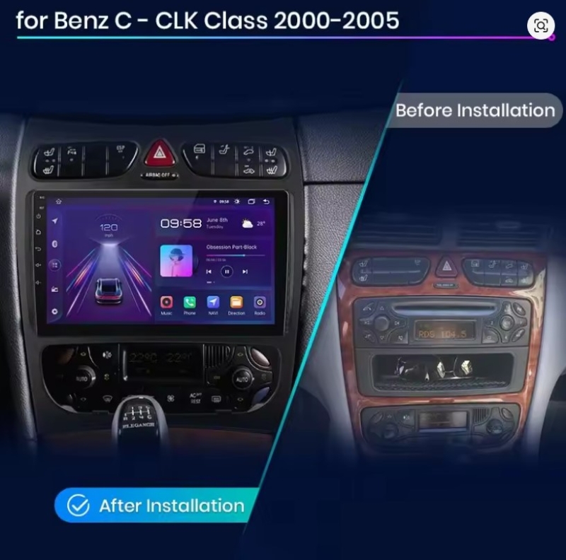 Mercedes CKlasse CLK W203 navigatie android 14 dab+ apple carplay/ android auto ACTIE