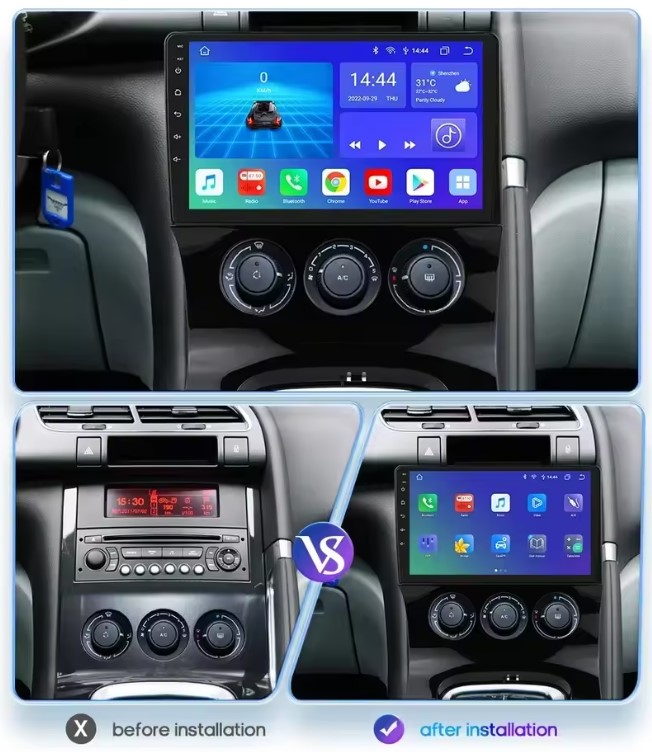 Radio navigatie multimedia met android 14, apple carplay en android auto voor Peugeot 3008 en 5008 met 9inch QLED touchscreen en quadcore processor 2+32GB geheugen. (Ook leverbaar met octacore processor 4+64GB geheugen +100 euro of octacore 6+128GB +150 euro)