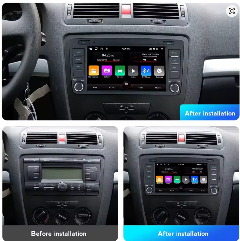 Radio navigatie multimedia met 8inch QLED capacitieve touchscreen voor Skoda Octavia en Skoda Yeti met android 14 besturingssysteem en quadcore processor met 2G ROM en 32GB RAM geheugen.(Ook leverbaar met octacore 4G + 64GB +100 euro of 6G + 128GB +150 euro)