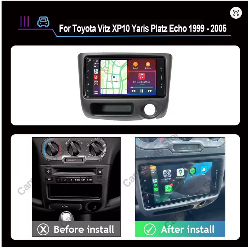 Toyota Yaris 1998-2005 radio navigatie 7inch android 14 dab+ apple carplay androidauto